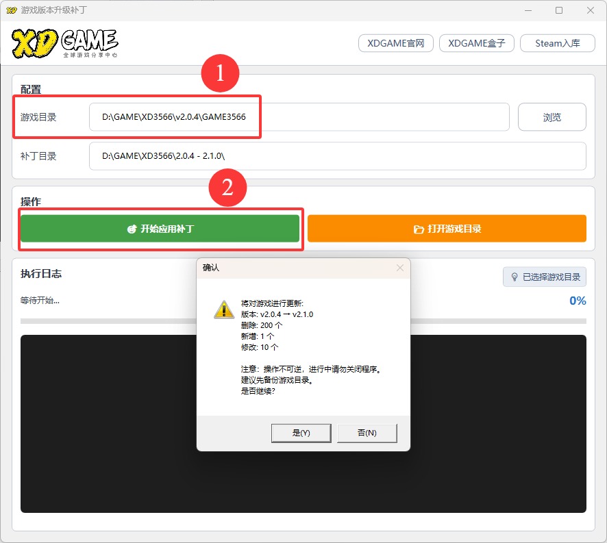 ②解压好后运行“GameUpdate.exe”然后选择我们需要升级的游戏目录,点击开始应用补丁