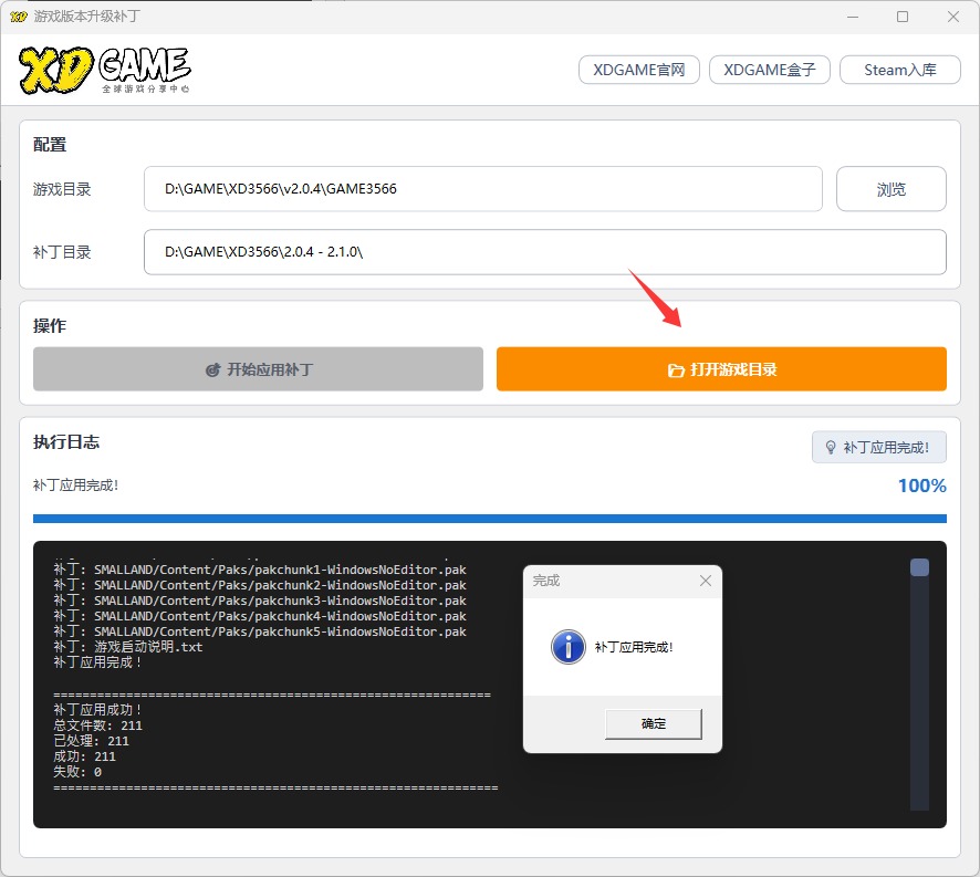 ③等待应用完成,点击打开游戏目录