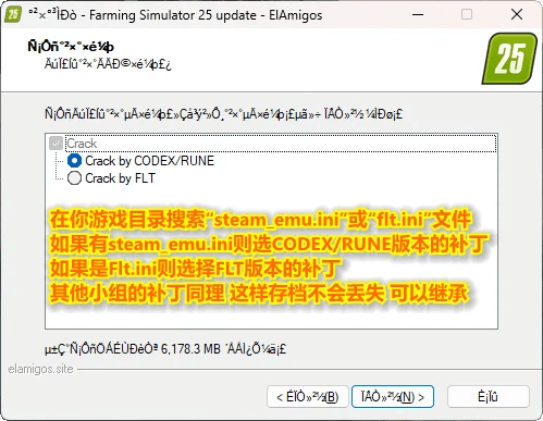 ④到选择补丁这步,你在你游戏目录搜索“steam_emu.ini”或“flt.ini”文件,如果有steam_emu.ini则选CODEX/RUNE版本的补丁即可,这样存档不会丢失。